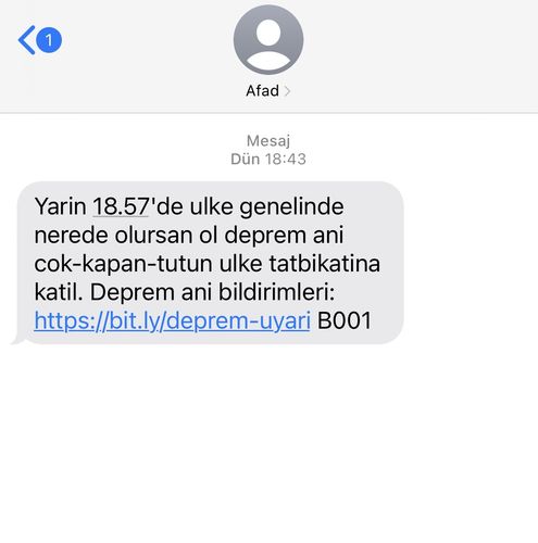 Afet ve Acil Durum Yönetimi Başkanlığı (AFAD) hatırlatma mesajlarını ise dün gönderdi. AFAD'ın gönderdiği mesaj şu şekilde: