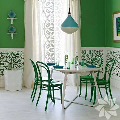 Yeşilin en şık ve ev dekorasyonuna en çok yakışan tonu olan zümrüt yeşilinin göz alıcı parıltısı yenilenmeyi, canlılığı, umudu ve gençliği çağrıştırıyor.
