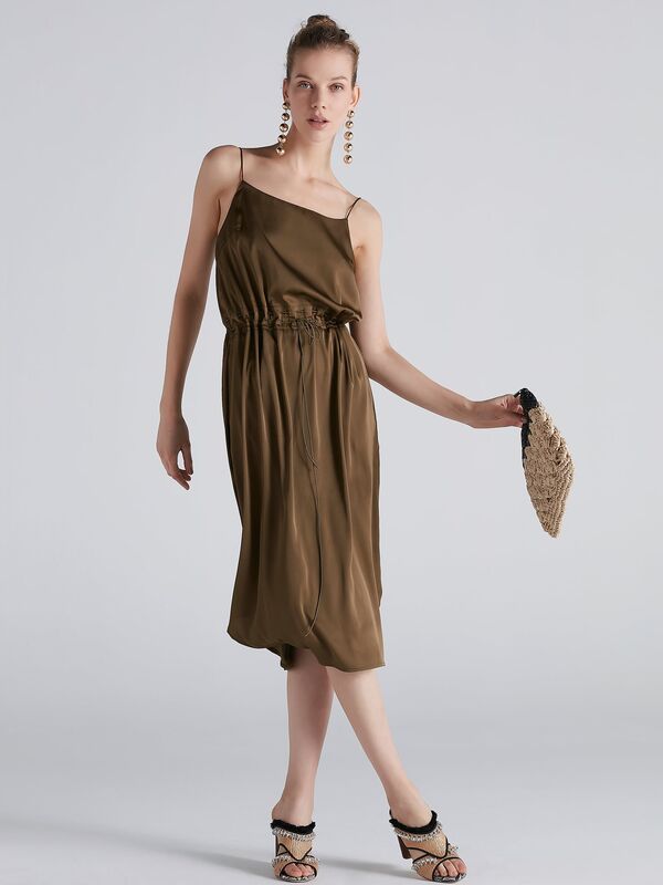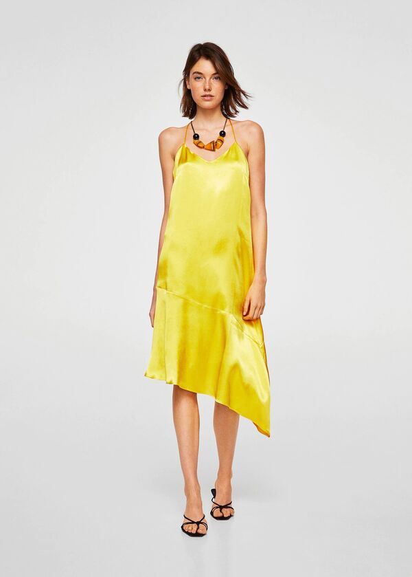 Mango Asimetrik saten elbise sarı 249.99 TL