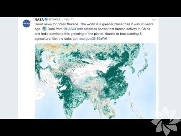 6- Forbes'ta yer alan haberde, NASA uydu görüntülerinden elde edilen verilere göre dünyanın 20 yıl öncesine göre daha yeşil göründüğü, ormanlık alan sayısının arttığı ifade edildi.