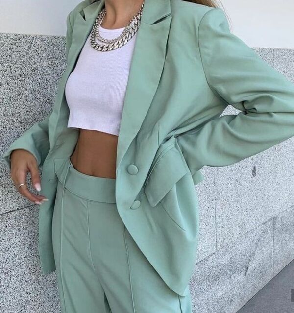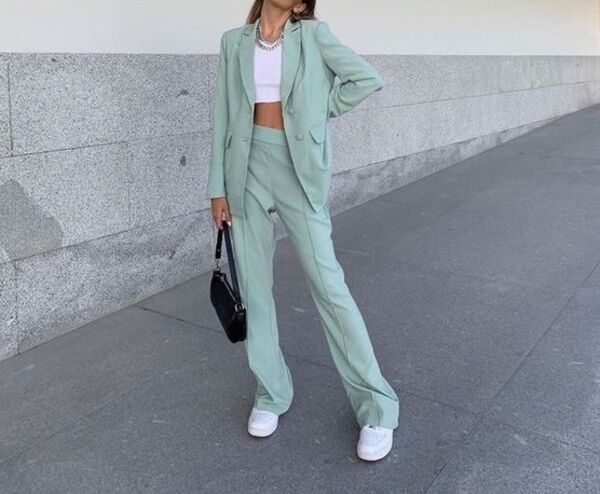 Takım elbiseleri topuklu ayakkabılarla kombinleyip iş yerine veya şık bir mekana gidebileceğiniz gibi spor ayakkabılarla tercih ederek kombininize enerjik bir hava katıp sporlaştırabilirsiniz de.