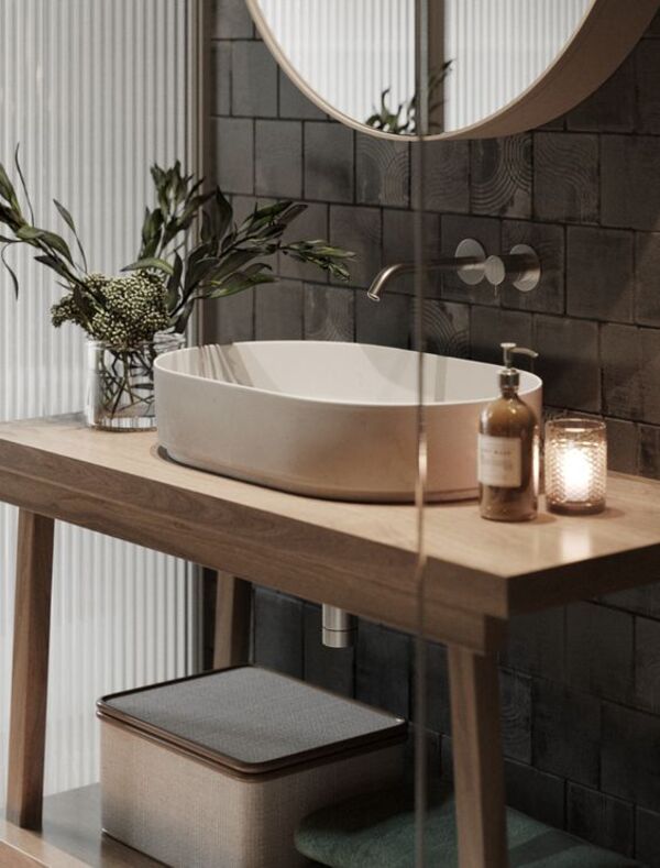 Mimaride bu sene yükselişte olan stillerden biri Japandi stil olacak. İskandinav tasarımların Japandi stili ile etkileşime girmesiyle çıtalı ahşap mobilyaları ve modern şekilleri bir arada göreceğiz. Bu etki siyah, beyaz ve krom detaylarla kuvvetli bir hale getirilebilir. Krom bir lavabo bataryası ya da beyaz çerçeveli ışıklı bir ayna ile çeşitlendirebiliriz.
