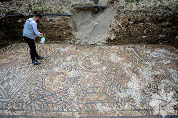 Bu yıl başlanan arkeolojik kazılarda, kamulaştırılmış alan içindeki tüm mozaik taban ile buradaki yapıya ait mevcut duvarların ve üzerindeki diğer katmanların da gün yüzüne çıkarıldığını anlattı. Kazı çalışmalarını 350 metrekarelik alanda sürdürdüklerini, bunun 50 metrekaresinde mozaik taban olduğunu aktaran kahveci, "Mozaiğin şu an kazamadığımız hem yol hem komşu parseller içerisinde devam ettiğini tespit ettik." diye konuştu.