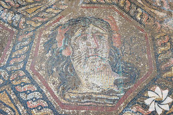 Kahveci, orta merkezdeki ana panelde kadın figürlerinin olduğuna dikkati çekerek, "Merkezdeki figürün yanında 'Askania' yazdığını okuyabildik. Bu, İznik Gölü'nün Roma dönemindeki ismi. Bu mozaik üzerinden gölü tasvir etmişler. Baktığımız zaman suyla ilişkili bir figür görüyoruz. Yosunlarla tasvir edilmiş bir saç, taç olarak yengeç kıskaçları konulmuş başına ve boynu dalgalarla süslenmiş gibi... Yani İznik Gölü'nü bir kadın, kadim bir kişi olarak betimlemişler." ifadesini kullandı.