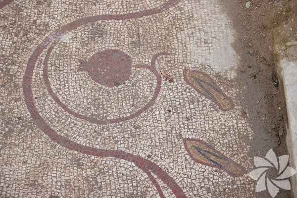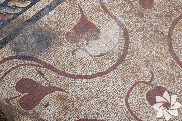 Kahveci, mozaiğin motifleri, renkleri ve desenlerinden, seramik ve sikke gibi buluntulardan yapının MS 3. yüzyıla ait olduğunu belirlediklerini dile getirerek, şöyle devam etti: "Yapının ana duvarlarının duvar resimleriyle kaplı olduğu, yer döşemeleri mermerden yapılmış olduğu ancak hem duvar resimlerinin hem de döşemelerin zaman içerisinde tahrip edildiği ve söküldüğünü tespit ettik. Mozaiğin büyük bölümü, günümüze sağlam ulaşmış durumda. Mozaiğin mevcut kısmında, üç farklı panel var ve bunun çevresinde nar ve sarmaşık yapraklarıyla çevrilmiş bir bordür var. Yapının bir odasına açılan bir eşik önünde iki çift sandalet giriş ve çıkış şeklinde tasvir edilmiş. Bu, mozaikli tabanın merkezi olarak algıladığımız, yapının içerisine giriş yapılan nokta. Buradan baktığımızda mozaiğin sağa ve sola eşit gittiğini varsayarsak yaklaşık 20 metrelik bir kenar uzunluğu tahmin ediyoruz. Mozaiğin çok daha büyük bir alana yayıldığını, yapacağımız çalışmalarla tespit edeceğimizi umuyoruz."