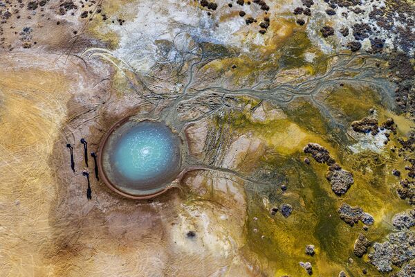Yeraltında biriken karbondioksit gazının basınç oluşturmasıyla suyun yüzeye çıkması sonucu oluşan gayzer, kısa süreli akışın ardından yeniden yeraltına çekilerek kayboluyor.