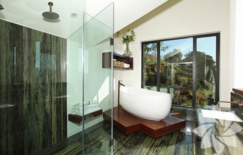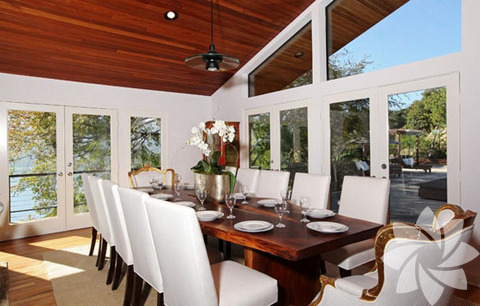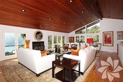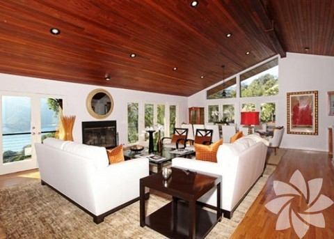 Evin büyüklüğü yaklaşık 242 metrekare civarında. Salon ve yemek odası yüksek tavanlar ve ahşap zeminden oluşuyor. Bu alandan dışarı açılan kapı ile barbekü, havuz, spa ve gün batımının izlenebileceği büyük bir terasa çıkılıyor. Giriş katında ayrıca mutfak, televizyon odası ve bir misafir banyosu yer alıyor.