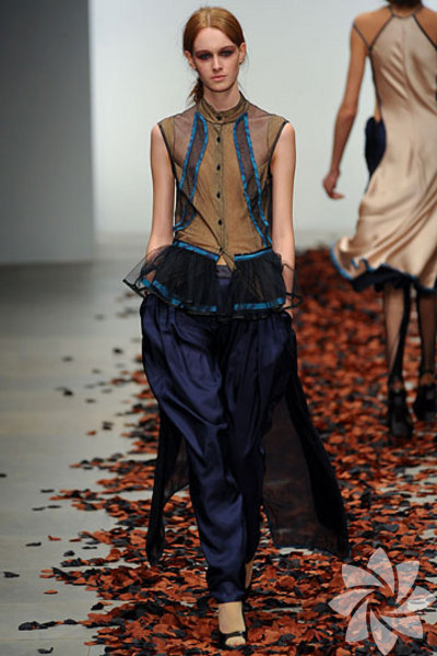 Edwardian daşlangıç dönemini anlatan romantik grupta krem, beyaz ve bisküvi renkleri; ipekler, tüller ve dantellerle hayat bulurken final grubundaki koyu mavi, indigo ve siyah; brokar, ipek krep gibi dokulu kumaşlarla koleksiyondaki değişkenliği anlatıyor. Edwardian döneminin etkisinin özellikle çok yoğun bir şekilde hissedildiği koleksiyondaki fırfırlı detaylar, kırık boncuk işleri, tül ve net panellerin yarattığı transparan havanın yanında dar ve uzun siluetler dikkat çekiyor. Özellikle couture tekniklerinin hazır giyime yansıtıldığı koleksiyonda, kokteyl elbiselerinin yanında rahat giyilebilecek parçalar da var.