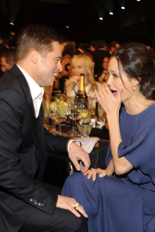 2009 yılında Brad Pitt'le Screen Actors Guild ödül töreninde çok keyifli gözüküyor.