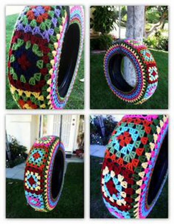 Eski tekerlekleri salonunuzda renkli bir oturma pufu haline getirebilirsiniz.