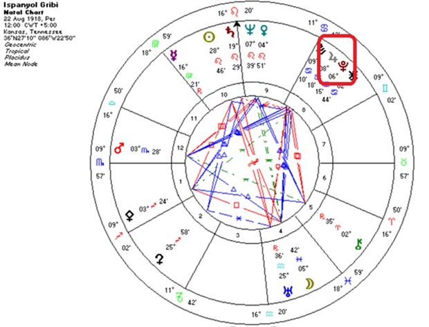 İspanyol gribi 3 dalga ile Dünyada bir felakete yol açtı. İlk dalga başladığında Jüpiter ikizler Pluto yengeç burcundaydı yani aralarında 30 derece vardı ve Jüpiter Pluto’ya doğru ilerleme hareketine başlamıştı. Fakat birinci dalga pandeminin en güçlü zamanı değildi.