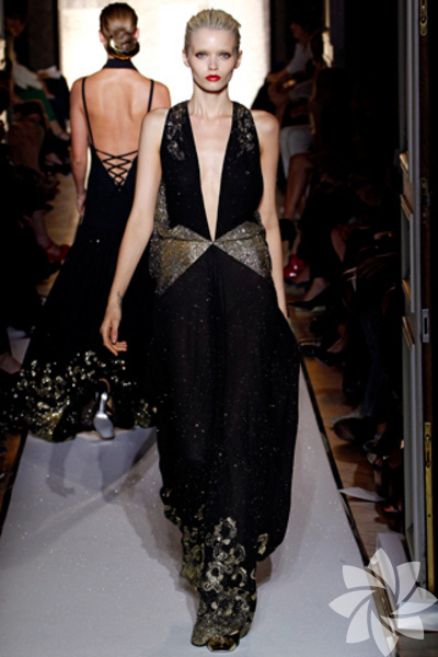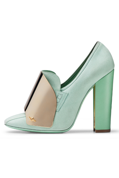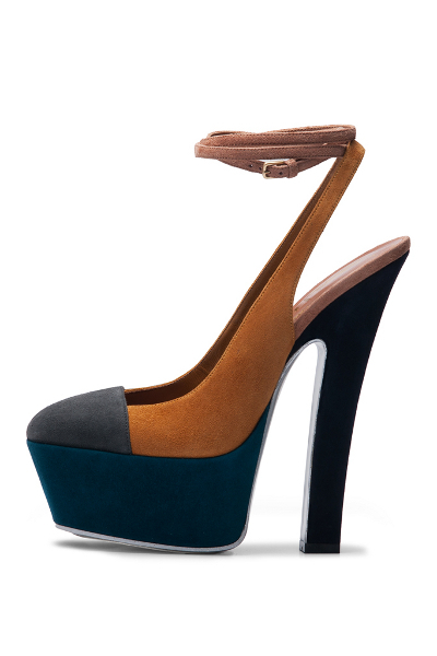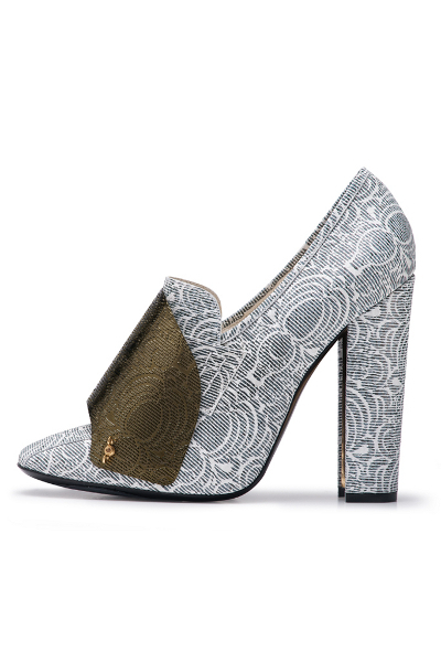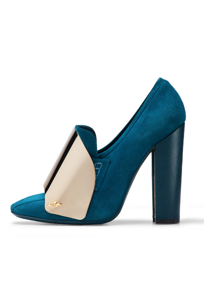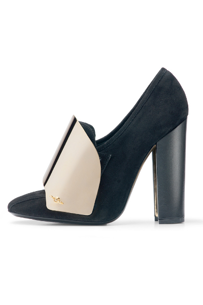 Ayakkabılara bakarak aksesuarların diğer tasarımların önüne geçtiği bir koleksiyon olduğunu söylemek mümkün. Tasarımlardaki koyu tonlar ve düz formlar ayakkabılardaki dore detaylarla dengeleniyor. Tamamı dore ve renkli taşlarla süslü modellerin yanı sıra kullanılan düz siyah modellerde bile dore bir detay bulunuyor.