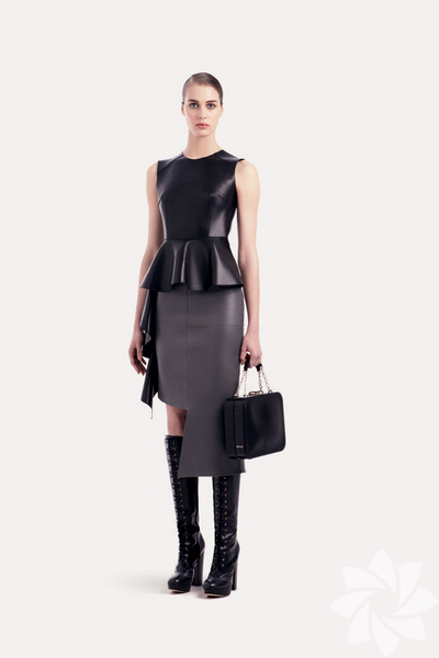 Şehirsel, asimetrik ve keskin kesimlerle kesinlikle ultra modern çizgiler taşıyan koleksiyonda ağırlıklı olarak kullanılan materyal deri olmuş. Zaten her iki tasarımcıda Bally'nin ana materyal olarak varolduğundan beri ana karakter olarak dahil ettiği derinin ne kadar çok yönlü kullanılabileceğini göstermek için bu seneki etek, üst ve elbiselerde fırfırları bolca kullandıklarını söylüyorlar. Kürk ve jarse diğer kullanılan materyallerdir.