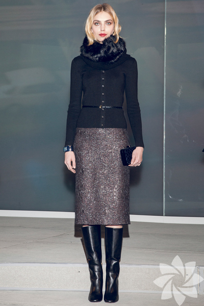 • Bu kış kabanların yerini pelerinlerin alacağı söylenebilir. Burada eklemeliyiz ki, pelerinlerin kenarlarına dikilmiş deri detaylar tasarımlara daha sofistike bir hava katmış. Pelerinlerin yanı sıra trençkotlar ve sahte kürklerden yapılmış yelekler koleksiyonun diğer göze çarpan parçaları.