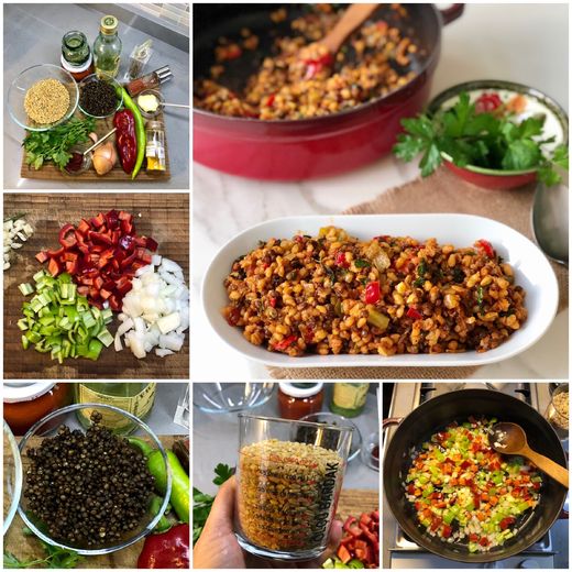 Evde en sevdiğimiz lezzetlerden biri olan biberli, domates soslu, maydanozlu bulgur pilavına ilave ettiğim siyah ‘’Beluga Mercimeği’’ demir, çinko, fosfor ve magnezyum bakımından zengin, aynı zamanda yüksek lif oranına sahip protein kaynaklarından biri… Diğer mercimekler gibi sofralarımızda bol bol yer vermemiz gereken besinlerden biri olan beluga mercimeğini haşlayarak küçük porsiyonlar halinde dondurucuda saklayabilirsiniz, ihtiyacınız kadarını çıkartıp salatalarda ve pilavlarda kullanmak kolaylık sağlayacaktır.