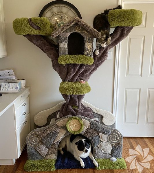 Kedi ağacının bir misafiri var.