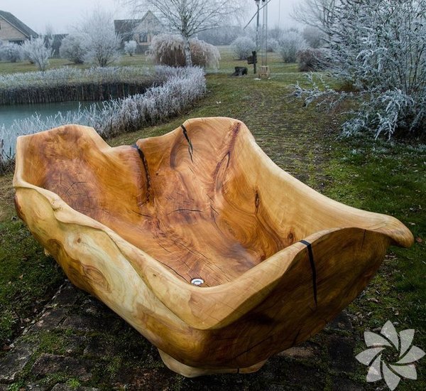 Ağaç gövesinden oyulmuş ahşap küvet