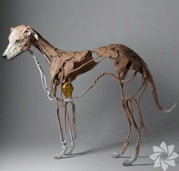 Altın kalpli kablodan yapılmış bir köpek