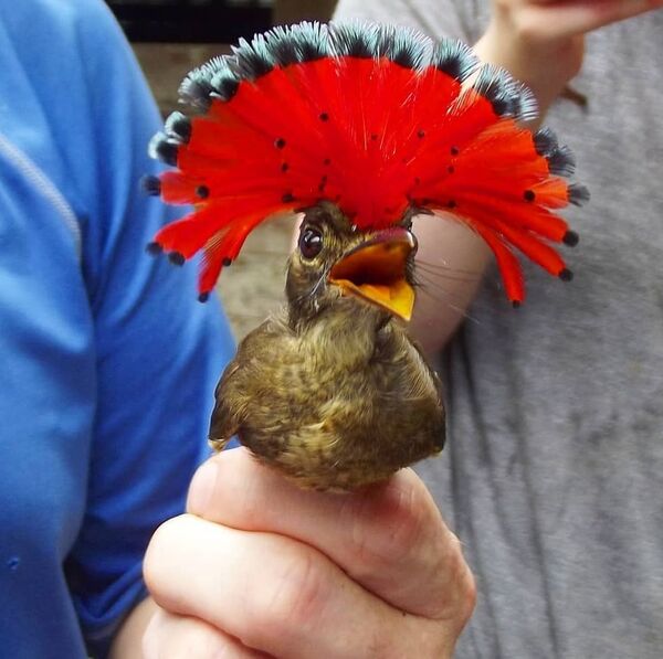 Kraliyet sinekkapanı olarak bilinen bu kuş türü başındaki renkli tüyleri sayesinde dikkat çekiyor.