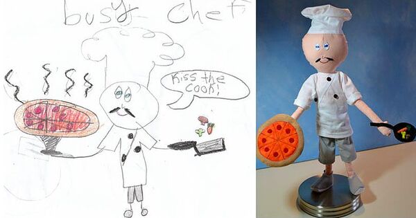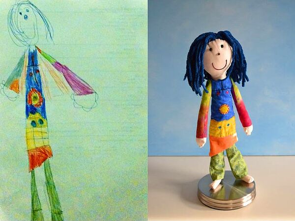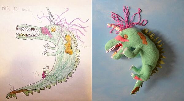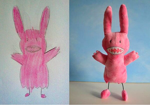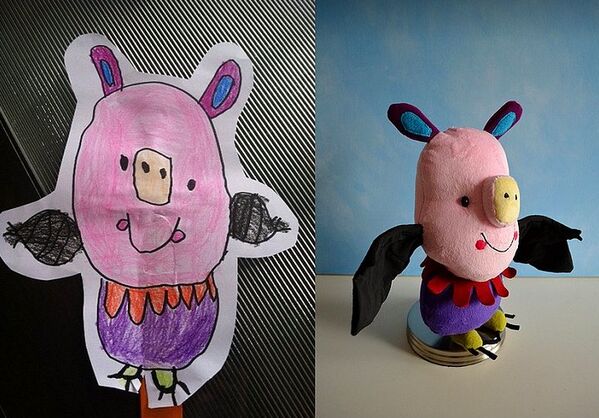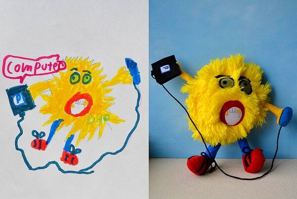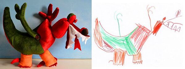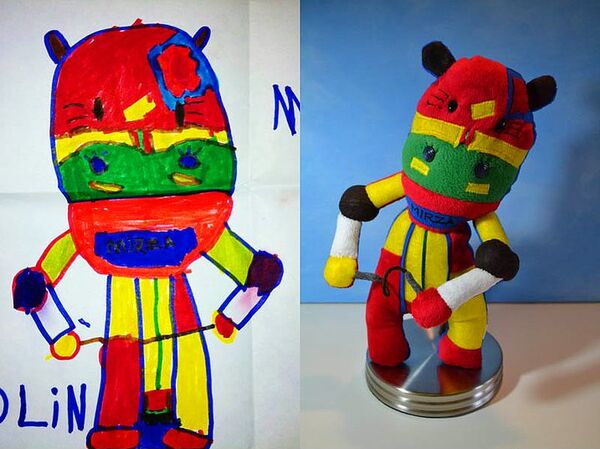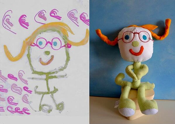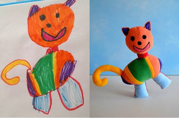Ardından stüdyo, çocuğunuzun kendi elleriyle çizdiği resmindeki hayali karakteri oyuncak-pelüş haline getiriyor.