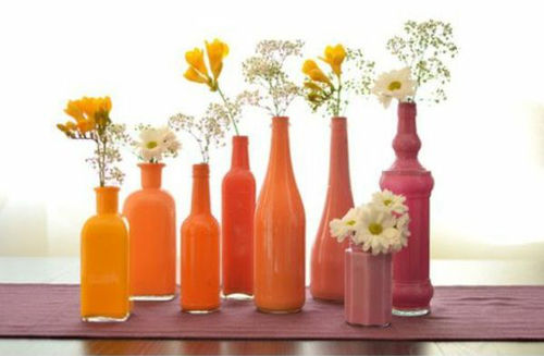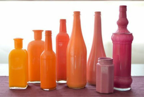 Cam şişelerden renkli vazolar yapabilirsiniz!