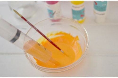 Şırıngaya boyayı çekip şişenin içine boşaltın.