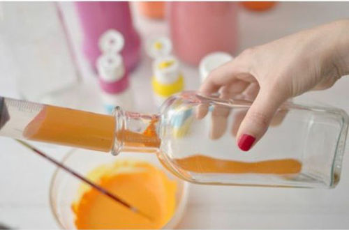 Öncelikle cam boyasını bir kapta karıştırın, şişenin ağız kısmında eksik kalan yerleri boyamak için fırçanızı, içini boyamak için şırınganızı hazırlayın.