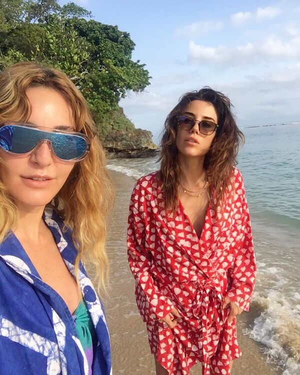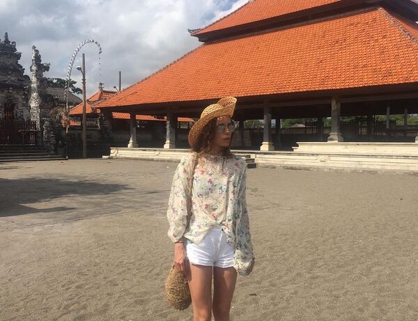 Yurt dışı tatilinde pembe tulumuyla oldukça sade bir görünüm elde etmiş.