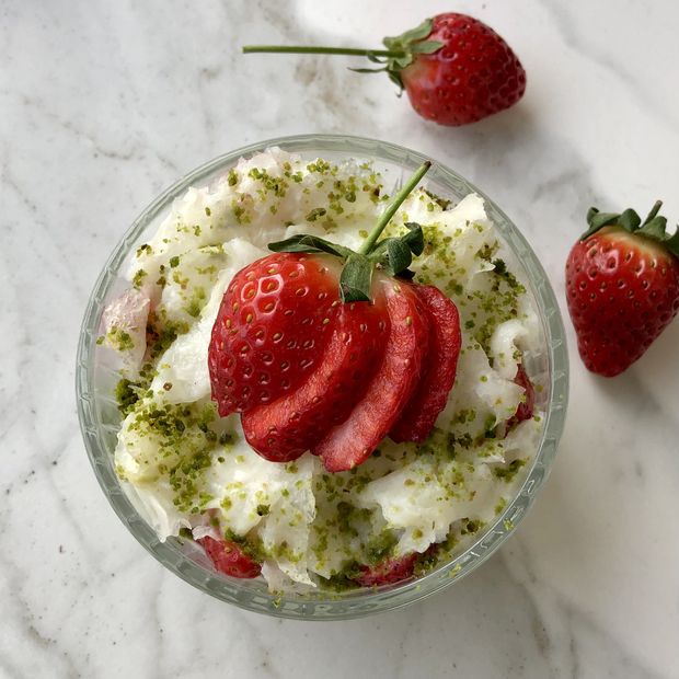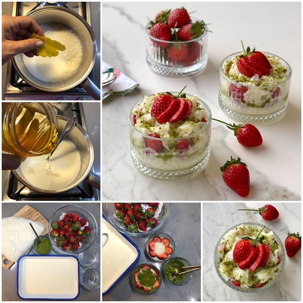 Çilekli Antep fıstıklı güllaç yapılışı: