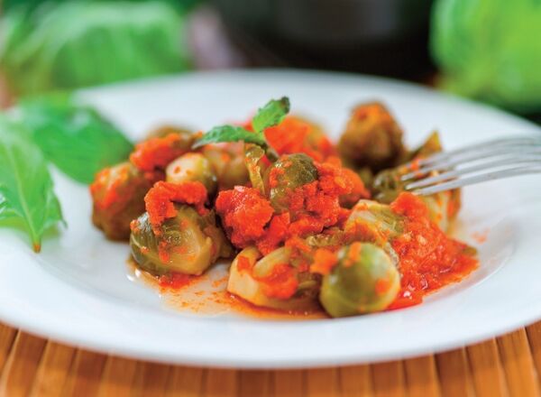 Minik lahanalarımızın dış yapraklarını çıkarıp ikiye böldükten sonra sızma zeytinyağına batırıp yağlı kâğıdın üzerine diziyoruz. Ardından 170 derece fırında 15 dakika pişiriyoruz. Üzerine domates sosu döktüğünüzde yediğinizin brüksellahanası olduğuna inanamayacaksınız.