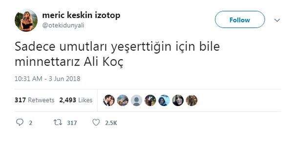 Ali Koç'un başkan olmasının ardından sosyal medyada da büyük beğeni toplayan paylaşımlar oldu.