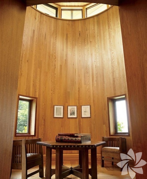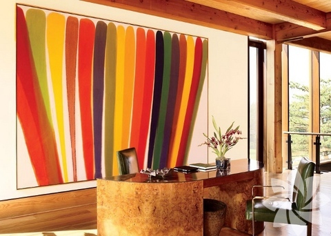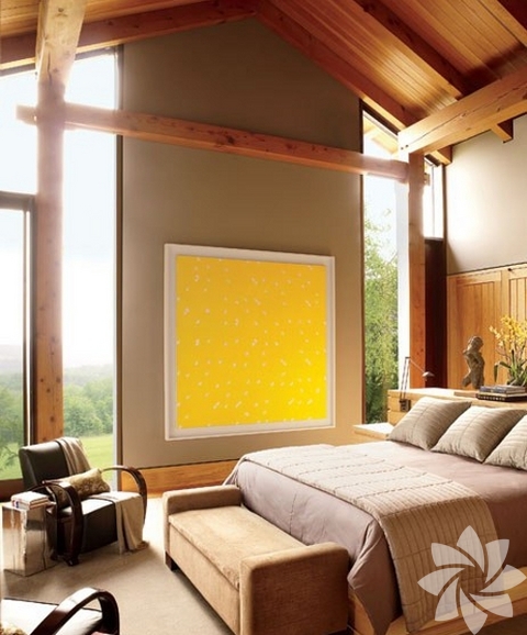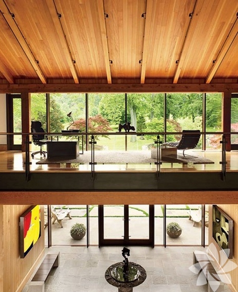 Temelinde camın yanı sıra ahşapa yer verilen evin iç dekorasyonda da modern parçalar yer alıyor. Koleksiyoner yönüyle tanınan Robert E. Abrams ve oyunculuğun yanı sıra editörlük yapan eşi Cynthia Vance'in sanata olan düşkünlükleri evin içerisine de yansıyor. Evin geneline bakıldığında en çok dikkat çeken; duvarlarda bulunan renkli, büyük tablolar oluyor. Tablolardan sonra evde en çok yer kaplayan ise boydan boya tüm duvara yayılan raflar ve bu rafları süsleyen kitaplar oluyor. Evin birçok kısmı kitaplık ve okuma odası şeklinde tasarlanması ise çiftin okumaya olan bağlılıklarını belirtiyor. Modernizmin etkilerini yansıtan bu camdan ev, tablolardan kitaplara kadar her detayıyla sanat kokuyor.