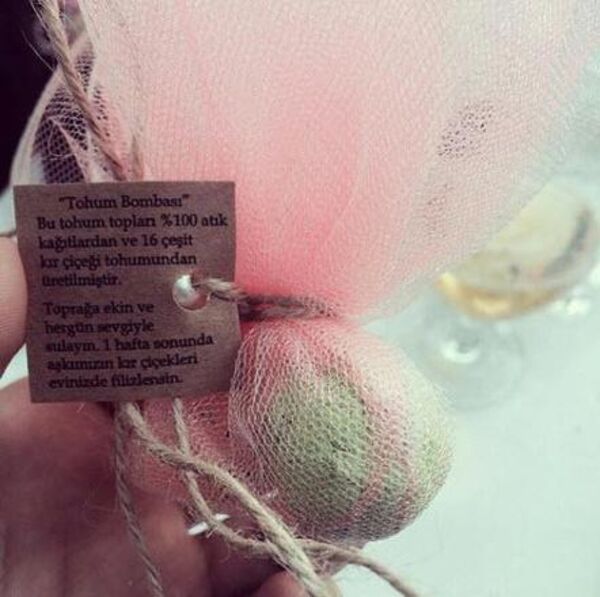 Doğa Rutkay ve Kerimcan Kamal'in geri dönüşümü destekleyen nikah şekeri "tohum bombaları"dağıtıldı.