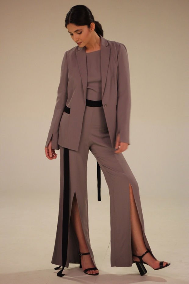 Yalın, dişi, sofistike ve güçlü. Aslında kafamda tavır olarak hep şu var ‘güçlü kadın’ silüeti. Güçlü kadınları yani zekasıyla var olan yaratıcı kendi ayakları üzerinde duran modern kadınları hayal ederek tasarımlarım hayat buluyor. Maskülen fakat küçücük bir detayla seksi ve dişi parçaları üzerinde doğal bir şekilde taşıyabilen kadınlar canlandırıyorum hep.