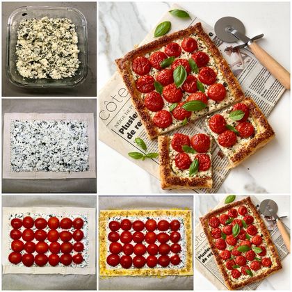 Milföy ile kolaylıkla yapabileceğiniz çeri domatesli, lorlu ve pestolu leziz tart...