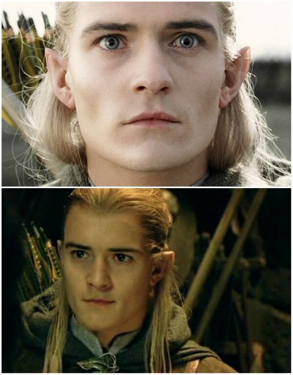 Filmde gözleri renkli olan Legolas'ın, ikinci fotoğrafta kendi göz rengini göreceksiniz. Dünyaca ünlü 'Yüzüklerin Efendisi' filminde bu detay herkesin gözünden kaçmış.