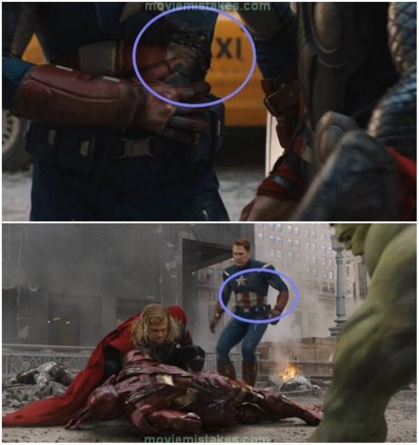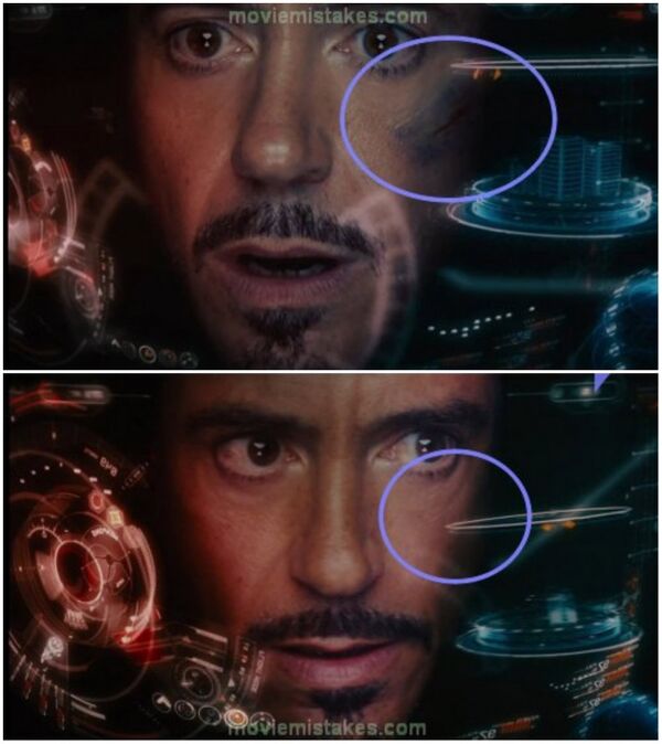 'Iron Man' filmindeki bir sahnede Tony Stark karakterinin yüzünde görünen bir sıyrık diğer sahnede ise yok olmuştu.