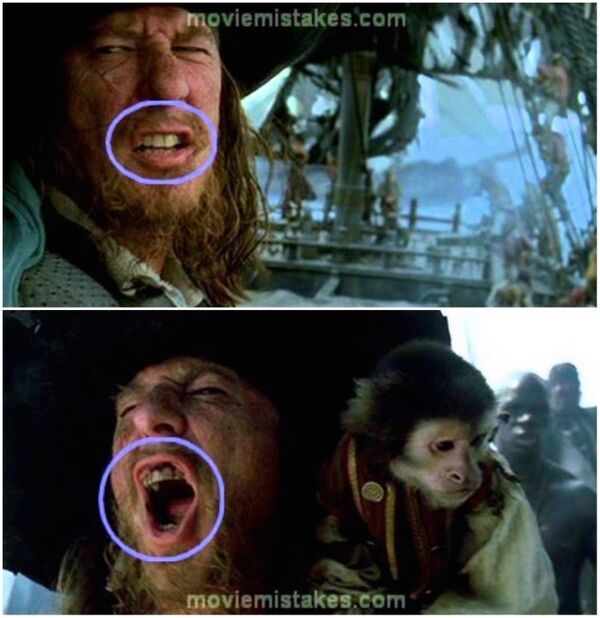 'Karayip Korsanları' filminde Kaptan Hector Barbossa karakterinin dişlerine dikkat çekiyoruz.