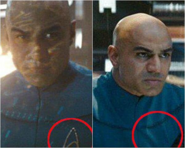 'Star Trek' filminde farklı karelerdeki üniformaların amblemlerine dikkat.