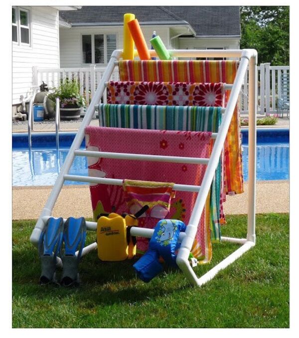 PVC borulardan havlularınızı kurutabileceğiniz askılık yapabilirsiniz.