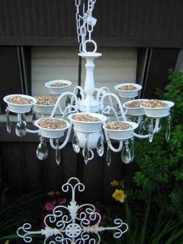 Bir kuş besleyici olarak eski bir avize kullanabilirsiniz.