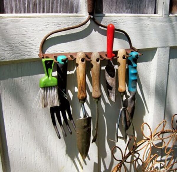 Eski tırmığınızı bahçe aletlerinizi asmak için kullanabilirsiniz.