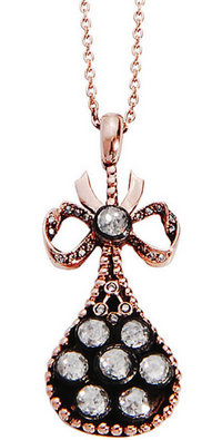 Pembe altının kullanıldığı bu özel tasarım, kolye ve küpeden oluşuyor. Zarif boyunları süsleyecek olan kolyede toplam bir karat elmas ve pırlanta kullanılırken; küpeler ise 0.73 karat elmas ve pırlanta ile bezenerek büyülü bir ışıltı yayıyor.