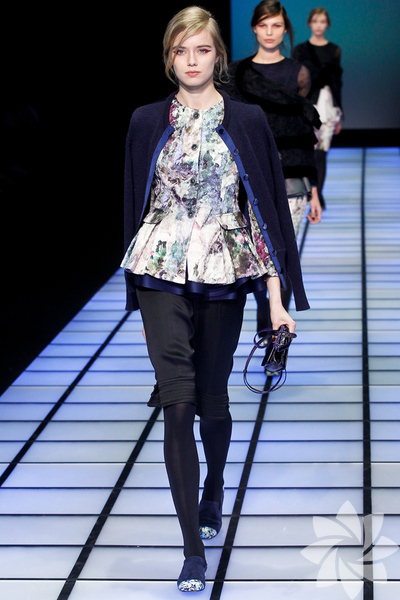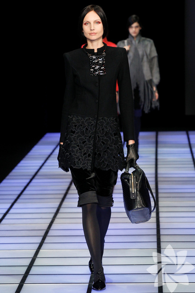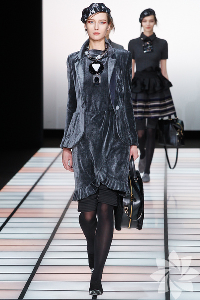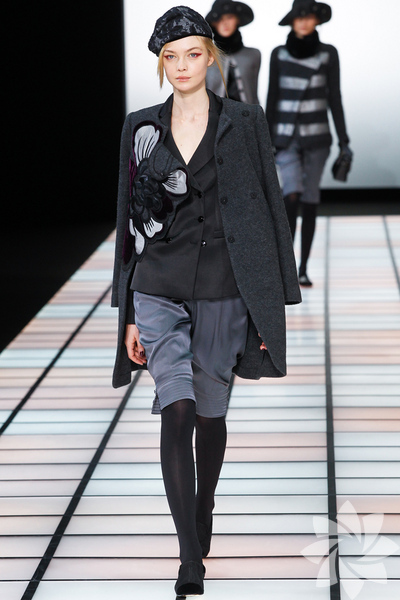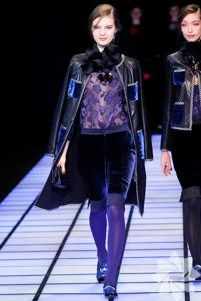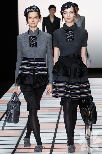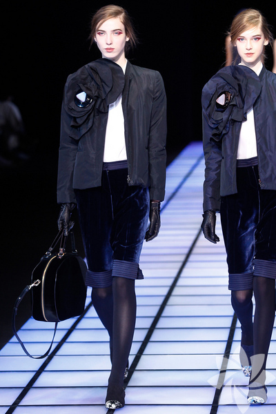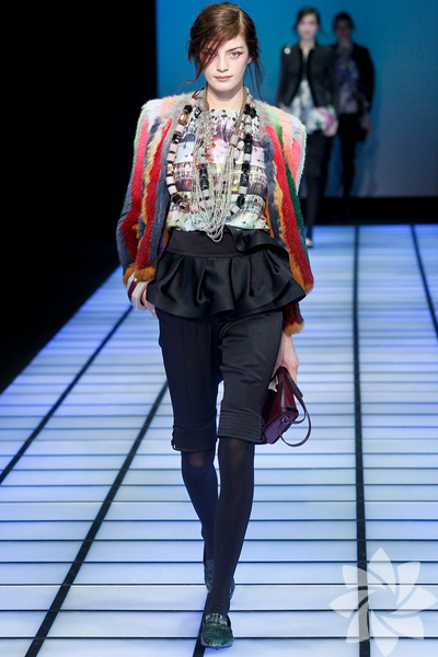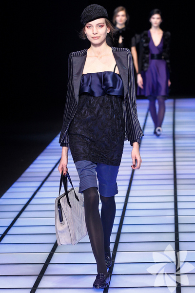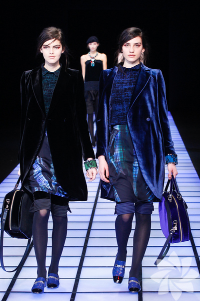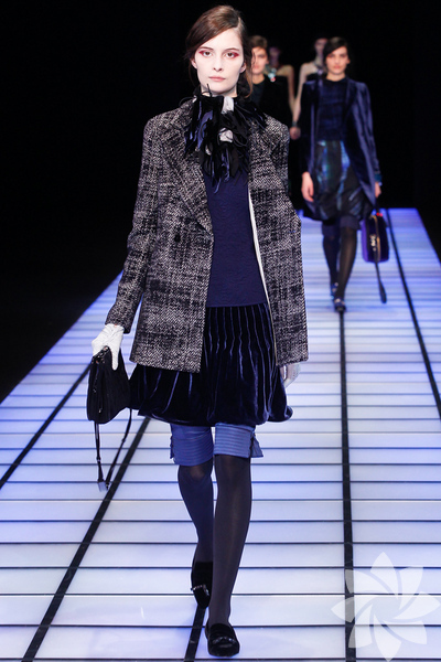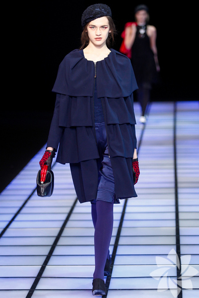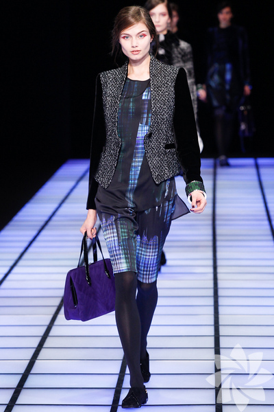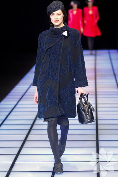 Emporio Armani 2012 - 2013 Sonbahar / Kış koleksiyonu; kırmızıların, beyazların, mavilerin, siyahların göz önünde olduğu bir koleksiyon ile karşımıza çıkıyor.