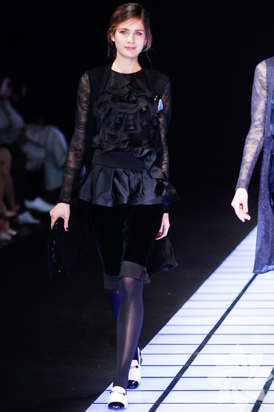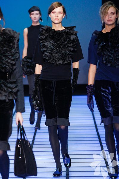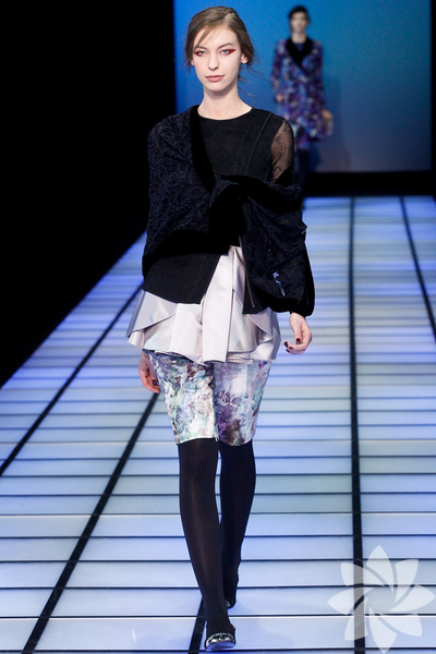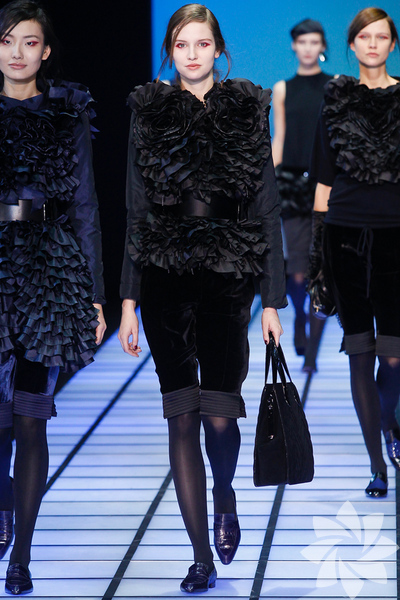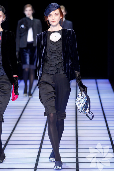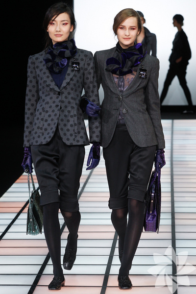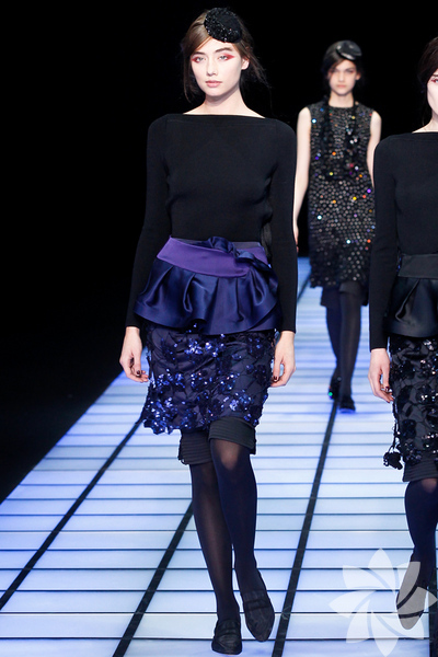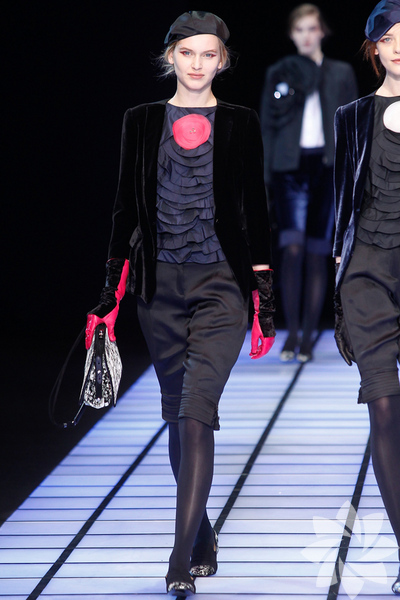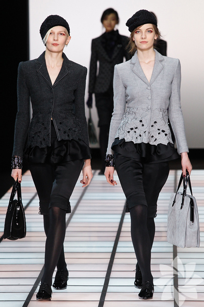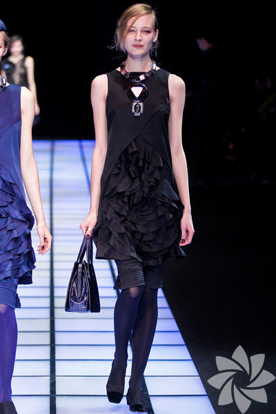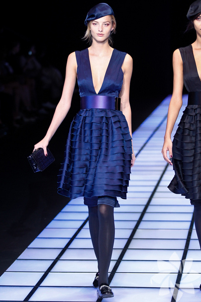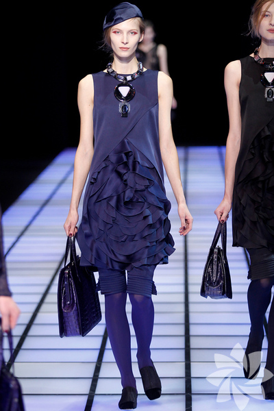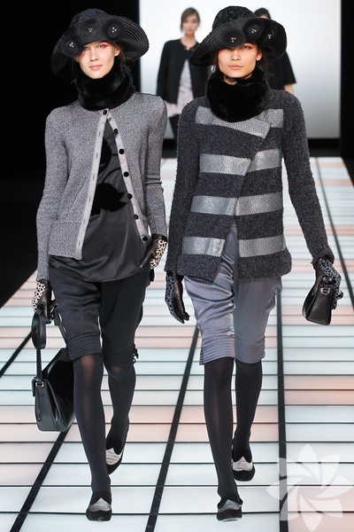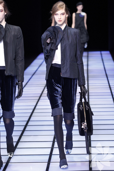 Emporio Armani 2012 - 2013 Sonbahar / Kış koleksiyonu; kırmızıların, beyazların, mavilerin, siyahların göz önünde olduğu bir koleksiyon ile karşımıza çıkıyor.