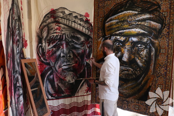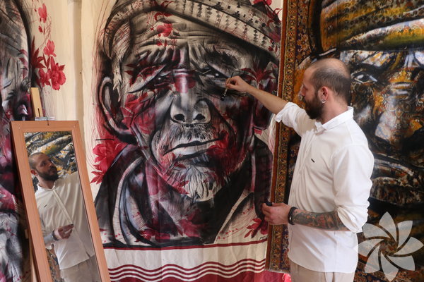 Ferhat Gümüş, özellikle eski perde ve halıların üzerine hikayesi olan insanları çizmeyi sevdiğini söyledi.