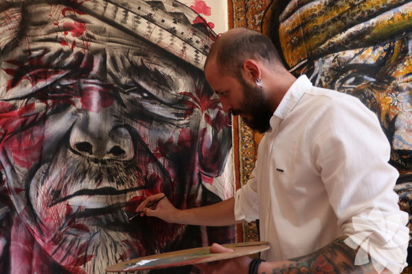 Gaziantep'te yaşayan 25 yaşındaki ressam Ferhat Gümüş, eskiyen halı ve perdelerin üzerine yaptığı resimlerle hem geçimini sağlıyor hem de geri dönüşüme katkı sunuyor.