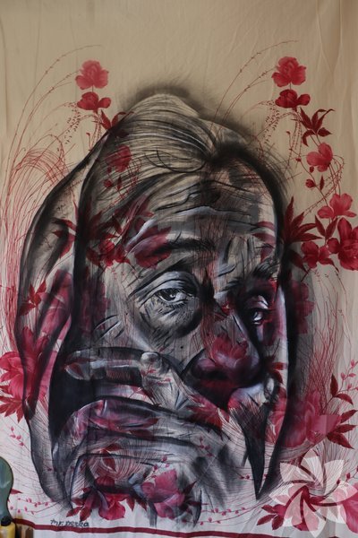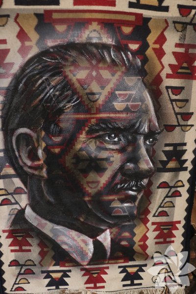 Yaklaşık 14 yıldır resim yapan Ferhat Gümüş, eskiyen halı ve perdelerin üzerine yağlı boya ve karakalem ile çeşitli resimler yaparak satışa sunuyor.