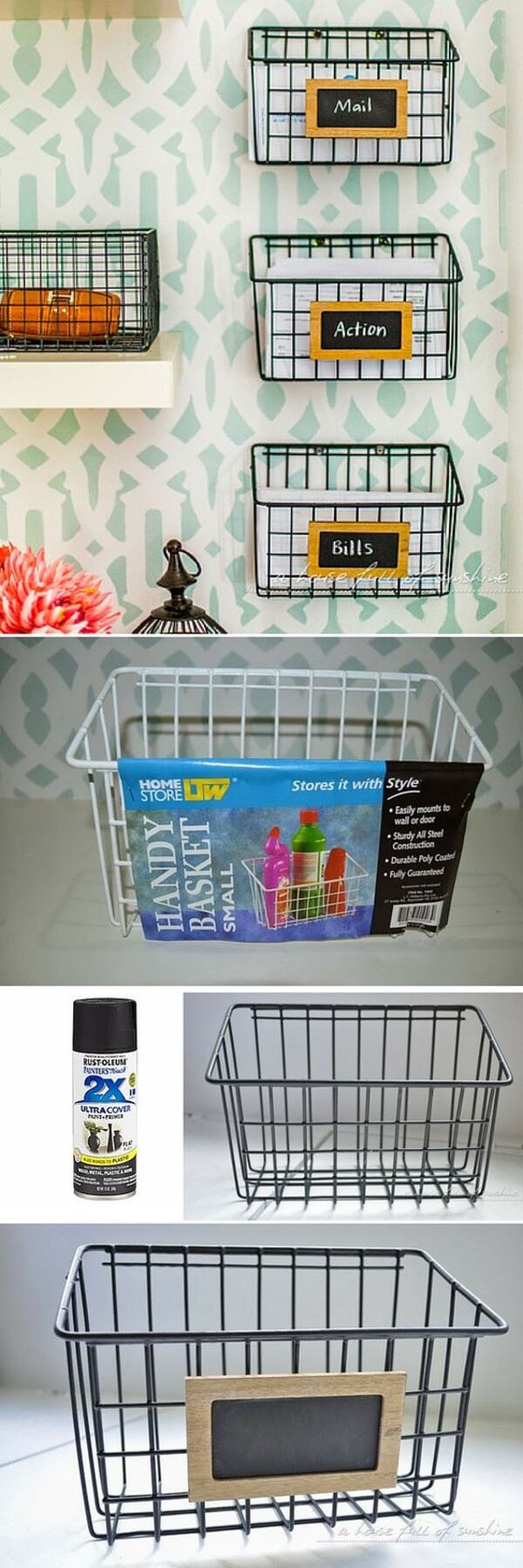 Banyonuz veya mutfağınız için dağınıklığı önleyecek harika bir fikrimiz var! Bu tel sepetleri istediğiniz renkte boyayın ve duvarınıza sabitleyin.