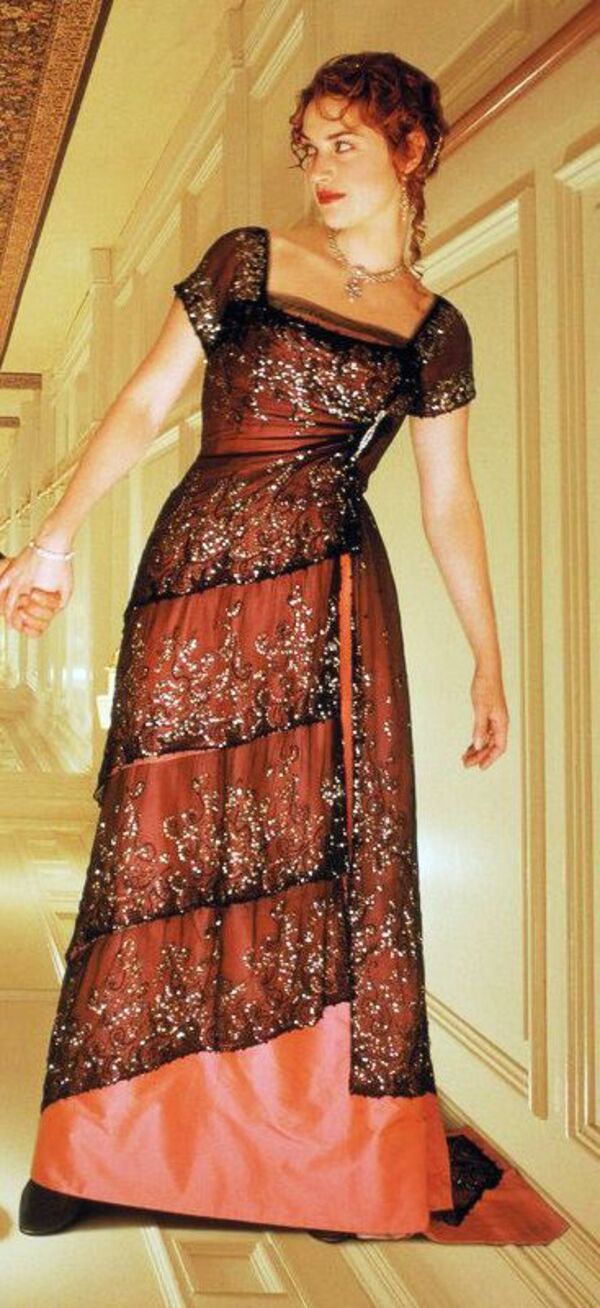 1997 yapımlı Titanik filminde Rose karakterinin giydiği bordo elbise.